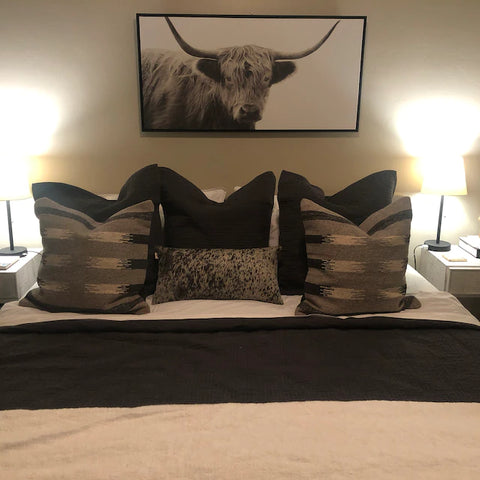 "I purchased two custom pillows from The Cow Pelt as part of my wedding decor. Melissa was a pleasure to work with and employed a great attention to detail, which really showed with the finished product. She helped me select the correct hide, thread color and font. The pillows were one of my favorite pieces of decor at the wedding and now my husband and I have them in our living room as a great reminder of our special day. I would recommend Melissa and The Cow Pelt products to anyone!" - Marjorie McLean